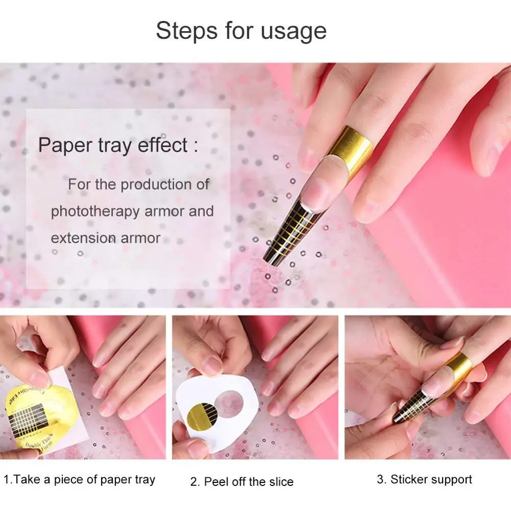 amazing 200PCS golden U Horseshoe Shaped Acrylic UV Gel DIY Nail Tool For Manicure Extension Forms Guide St
