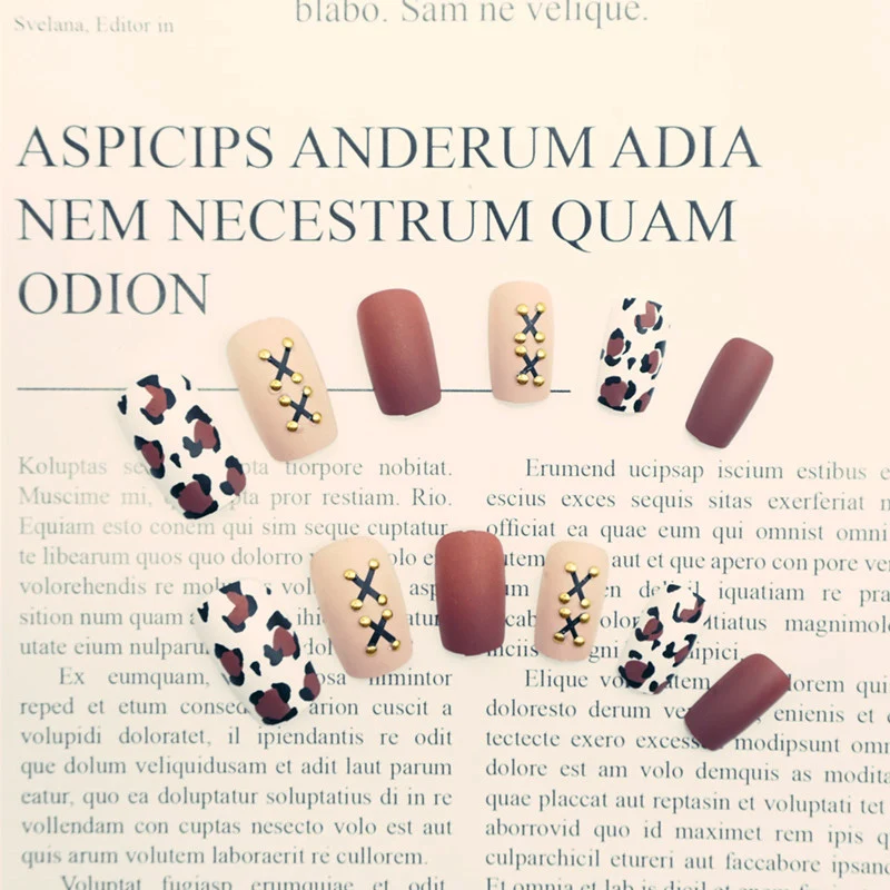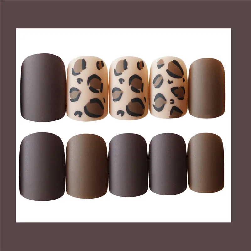 remarkable 24pieces Hot Sale Leopard Print Frosted 3D Fashion Sexy Style Long Nail Art Fake false Sticker for
