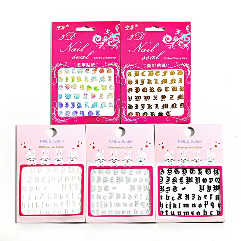 low cost 5sheet/13sheet 3D Old English alphabet Nail Art Sticker Nail Decal Character Nail Adhesive Sticker