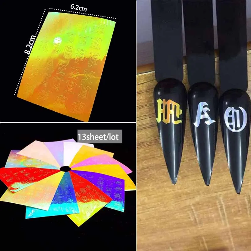 amazing 5sheet/13sheet 3D Old English alphabet Nail Art Sticker Nail Decal Character Nail Adhesive Sticker