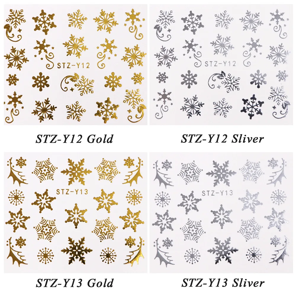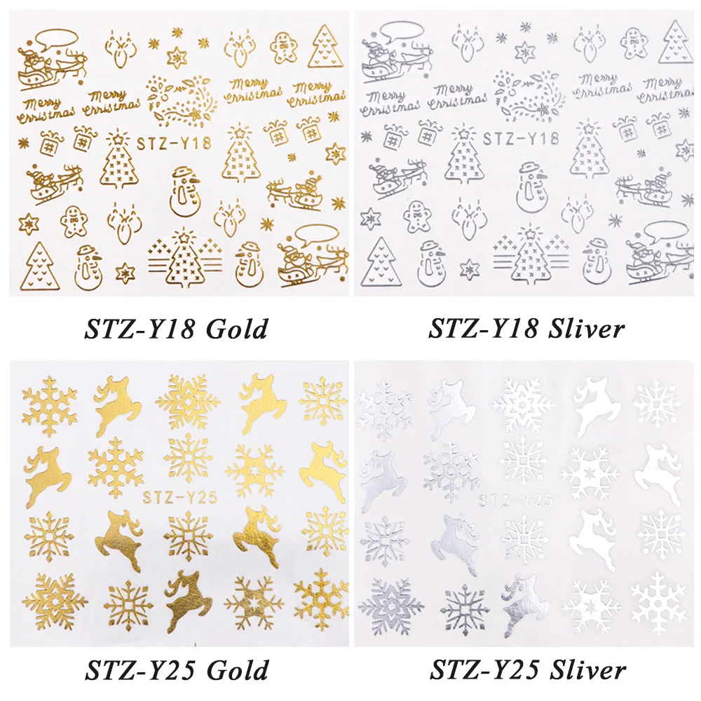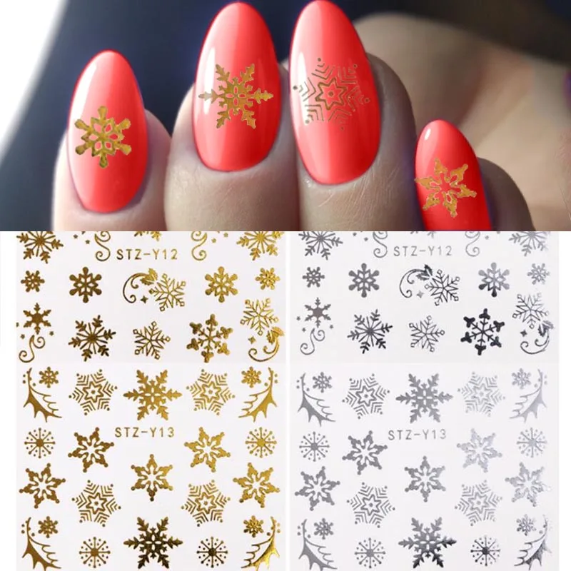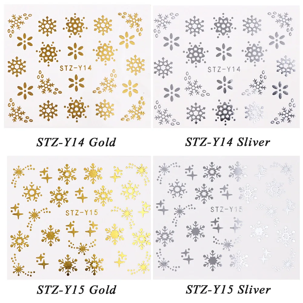 discounted Christmas Series Nail Stickers 16pc/set For Nail Art 3D Gold Silver Snowflakes Santa Design Manicur