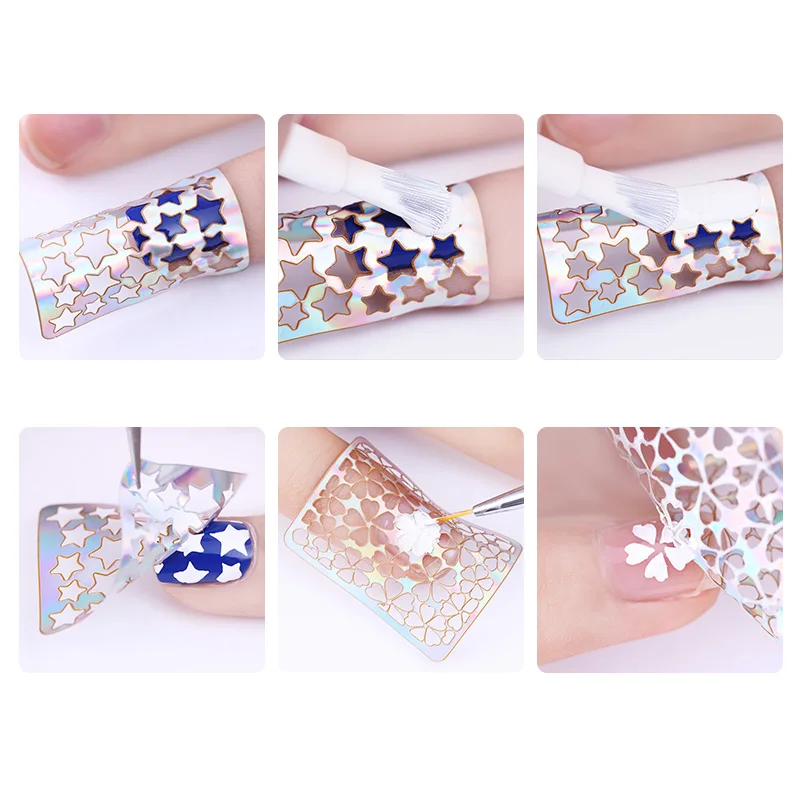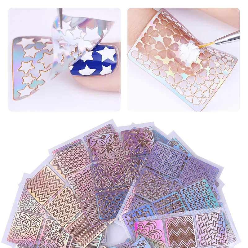 astounding Laser Hollow Nail Vinyls Nail Stencil Stickers Transfer Guide Template Heart Star Fish Nail Art Dec