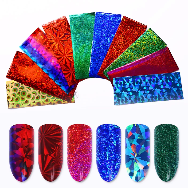 Most effective 50Pcs/Set Holographic Nail Foil Colorful Shinning Nail Art Transfer Decals Sticker 4*20 cm DIY Nail