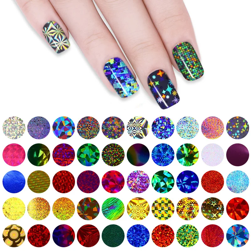 discount 50Pcs/Set Holographic Nail Foil Colorful Shinning Nail Art Transfer Decals Sticker 4*20 cm DIY Nail