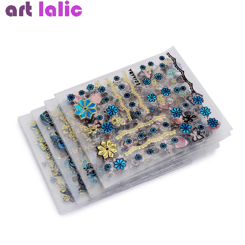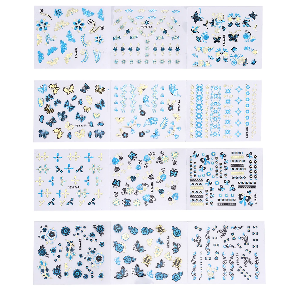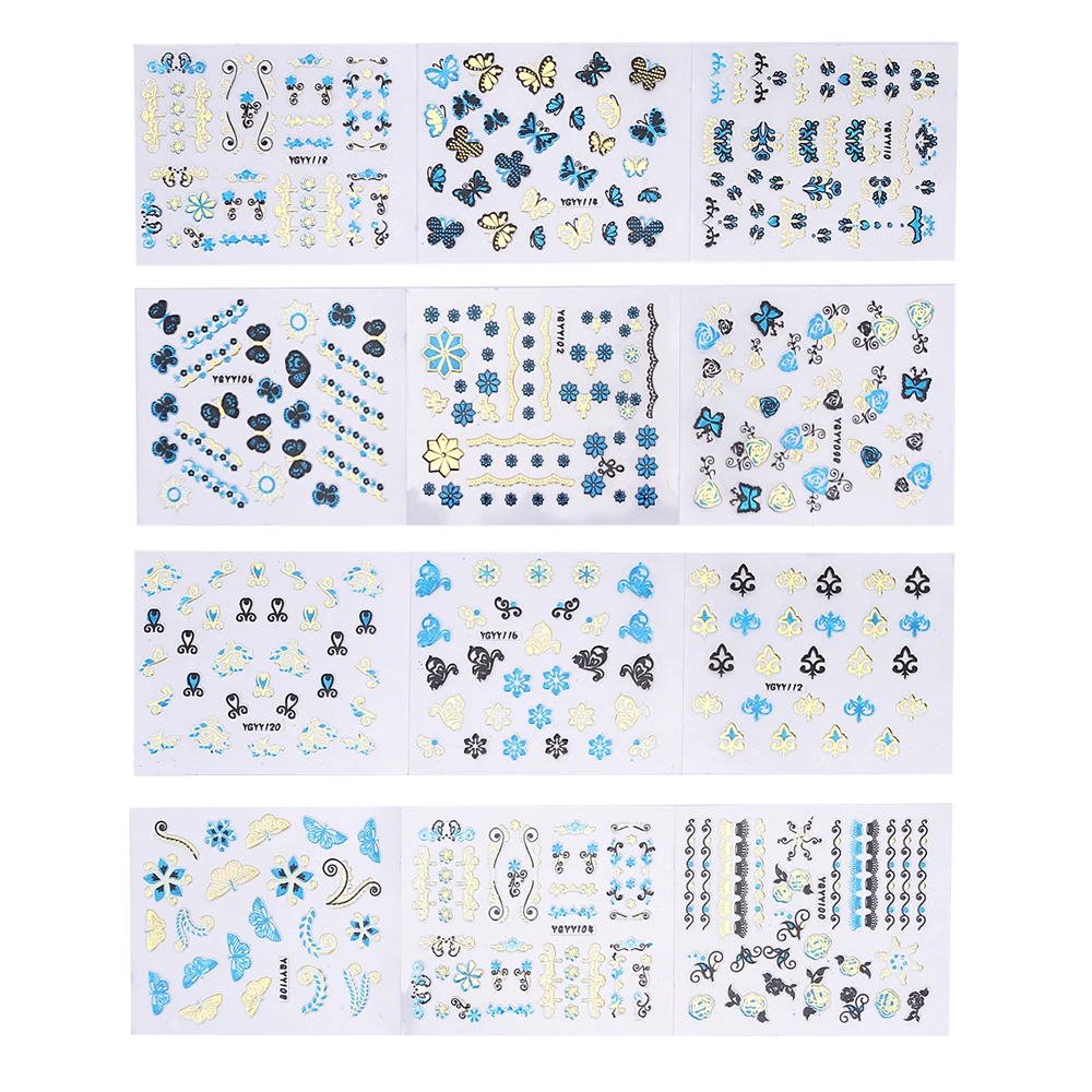 Very best 24Pcs/Lot Gold Blue Foil Nail Stickers DIY Glitter Beauty 3D Nail Art Decorations Stamping Manicure